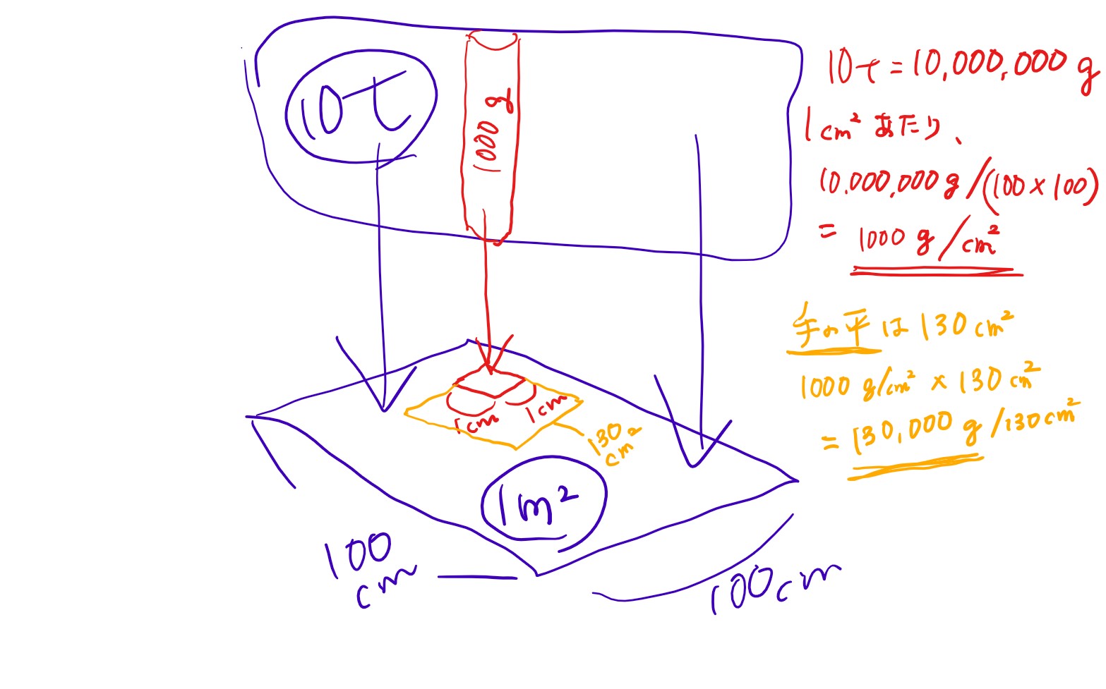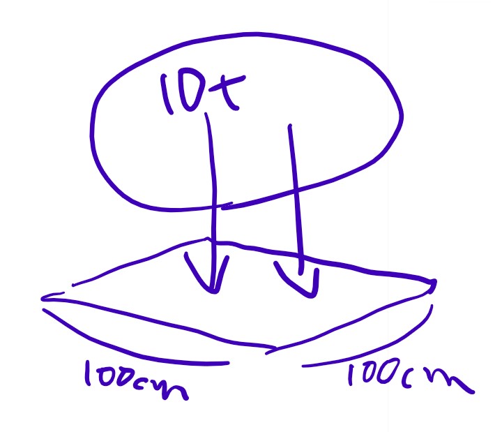 10,000kg÷10,000㎠=1kg/㎠