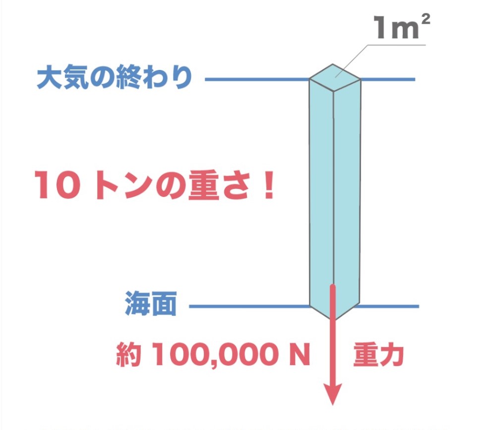 海面だと1平方メートルに10トンかかる。