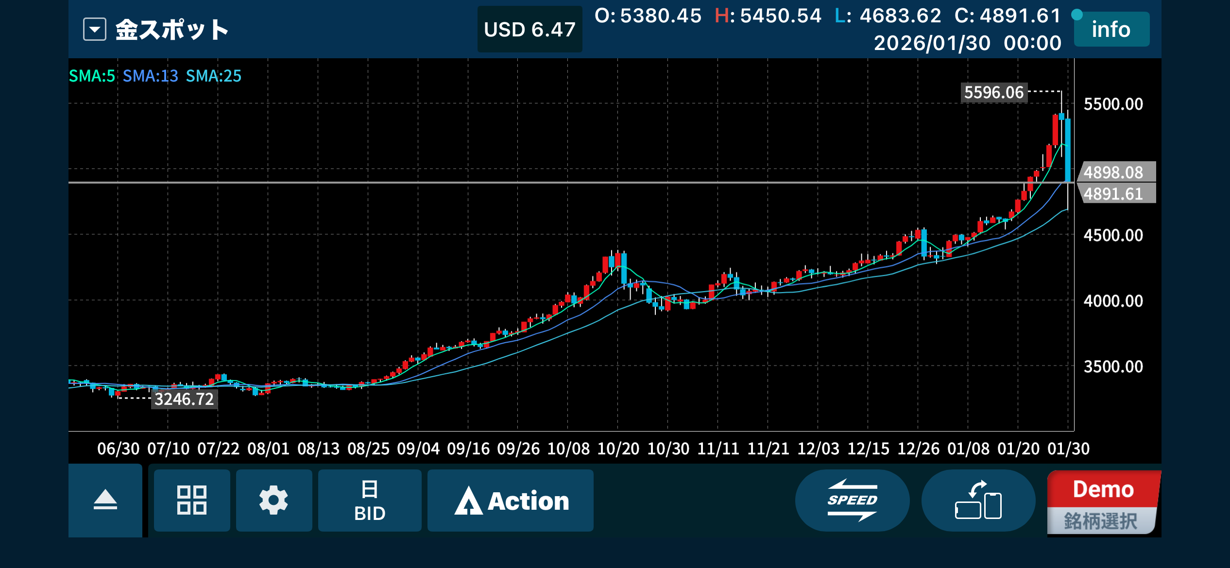 ゴールドはずーっと上がっていて、最近になって、シルバーがようやく2倍、3倍という感じであがってきたので、このまま金銀バブルが続くのか?と思ったところで、大口が養分イナゴを捕獲にやってきたと行った感じですかね。