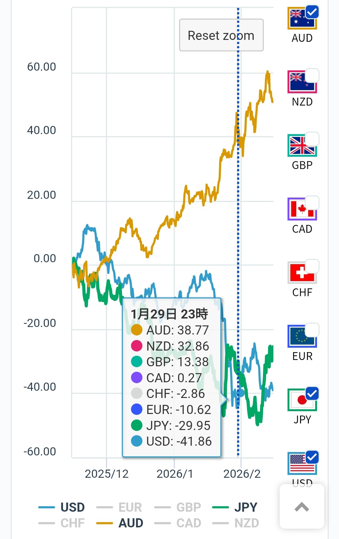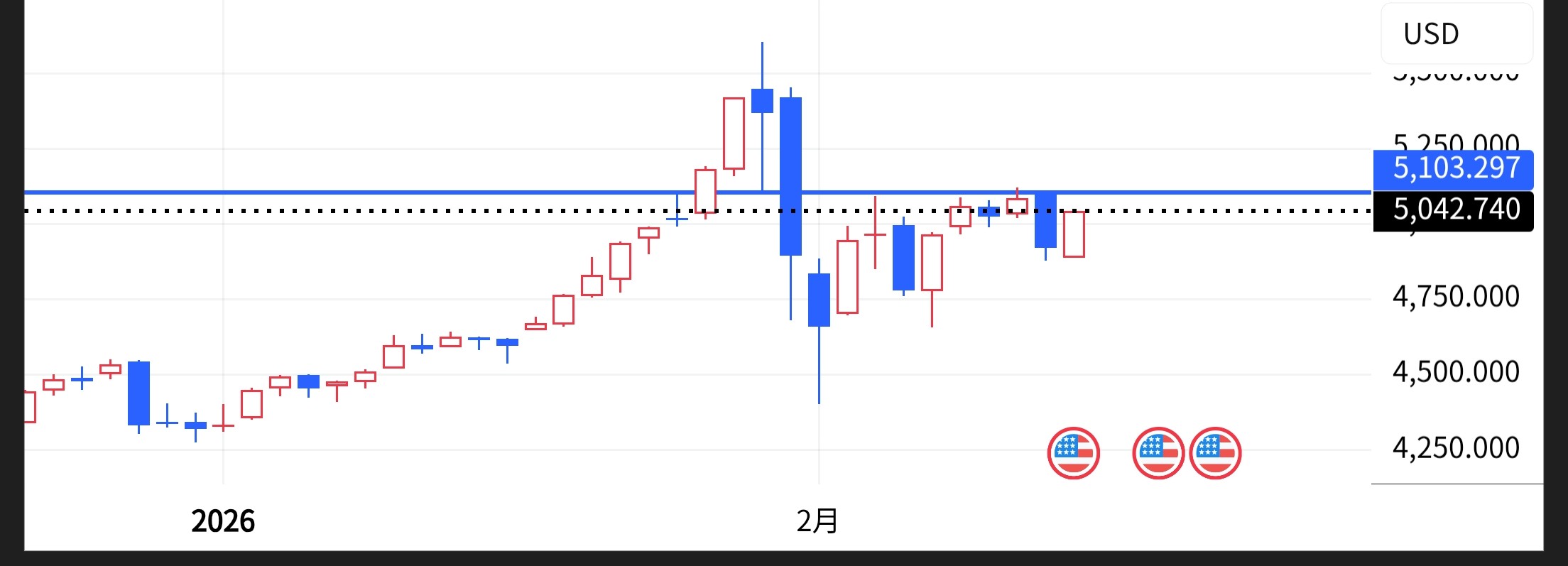 世界情勢は混迷を極めていますので、金銀がこのまま暴落し続けて、では株式なんかにマネーが回るのか?というと、一時的には回るでしょうけど、グローバル経済のデカップリングが進んで、ブロック経済へと(最近のEUとインドの経済同盟みたいな話やアメリカ帝国トランプ王朝(最近マイブームでこんな呼び方をしてます。)が南北アメリカとグリーンランドを帝国の支配下に置くみたいな話から)進みつつあるわけですから、その混乱期に株価が安直にあがるような気はしないのですが、かつて第二次世界大戦中に戦時バブルと統制によって、意外にも株式市場が堅調だったことを考えると、第三次世界大戦が起こっているのであれば、株式市場は問題なく上がり続ける可能性もありそうですね。