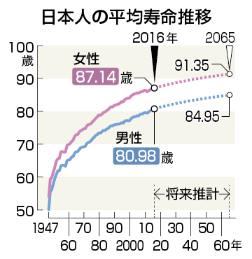 人生100年時代って誰が言い出したんだ。2065年でも男は平均85で死んでるぞ。