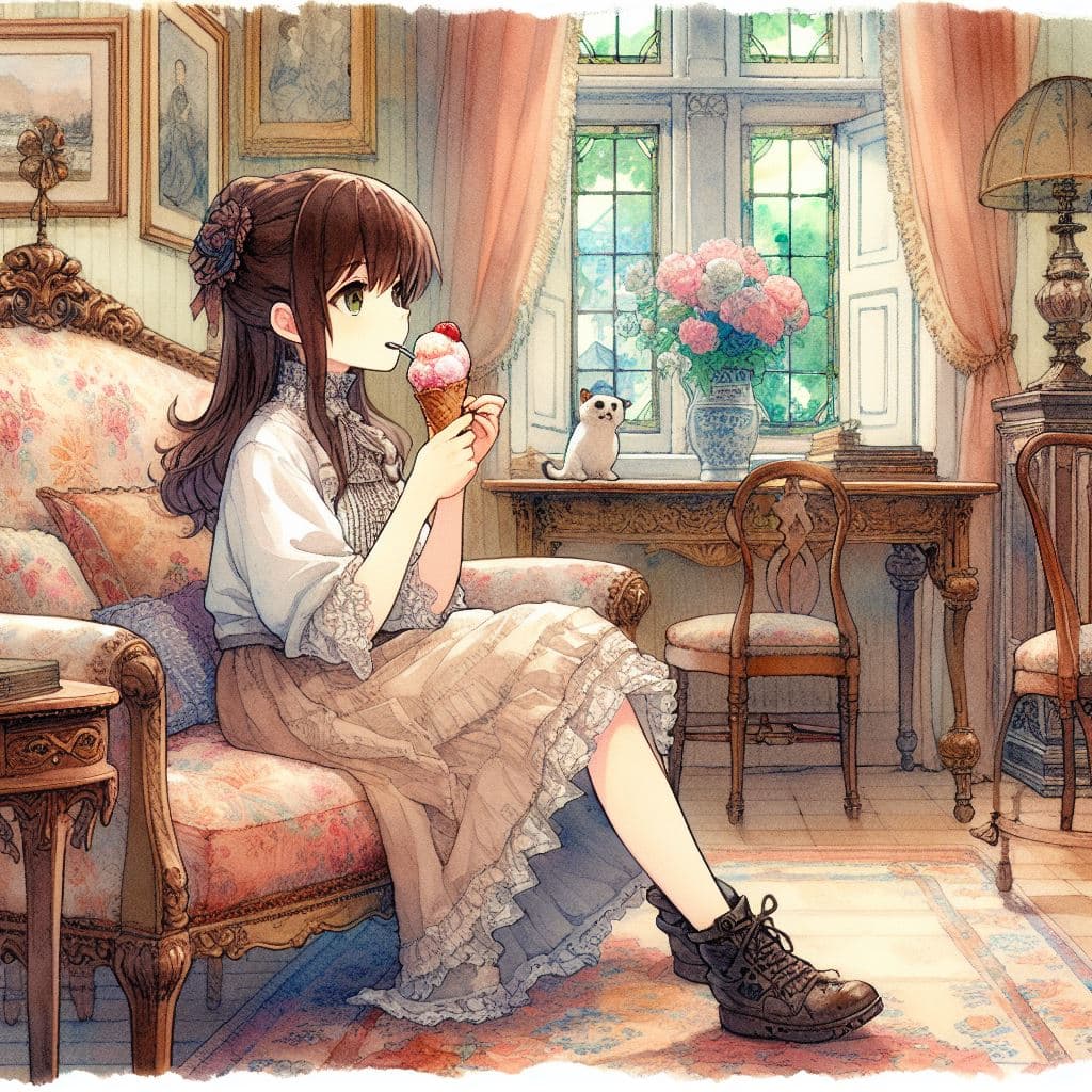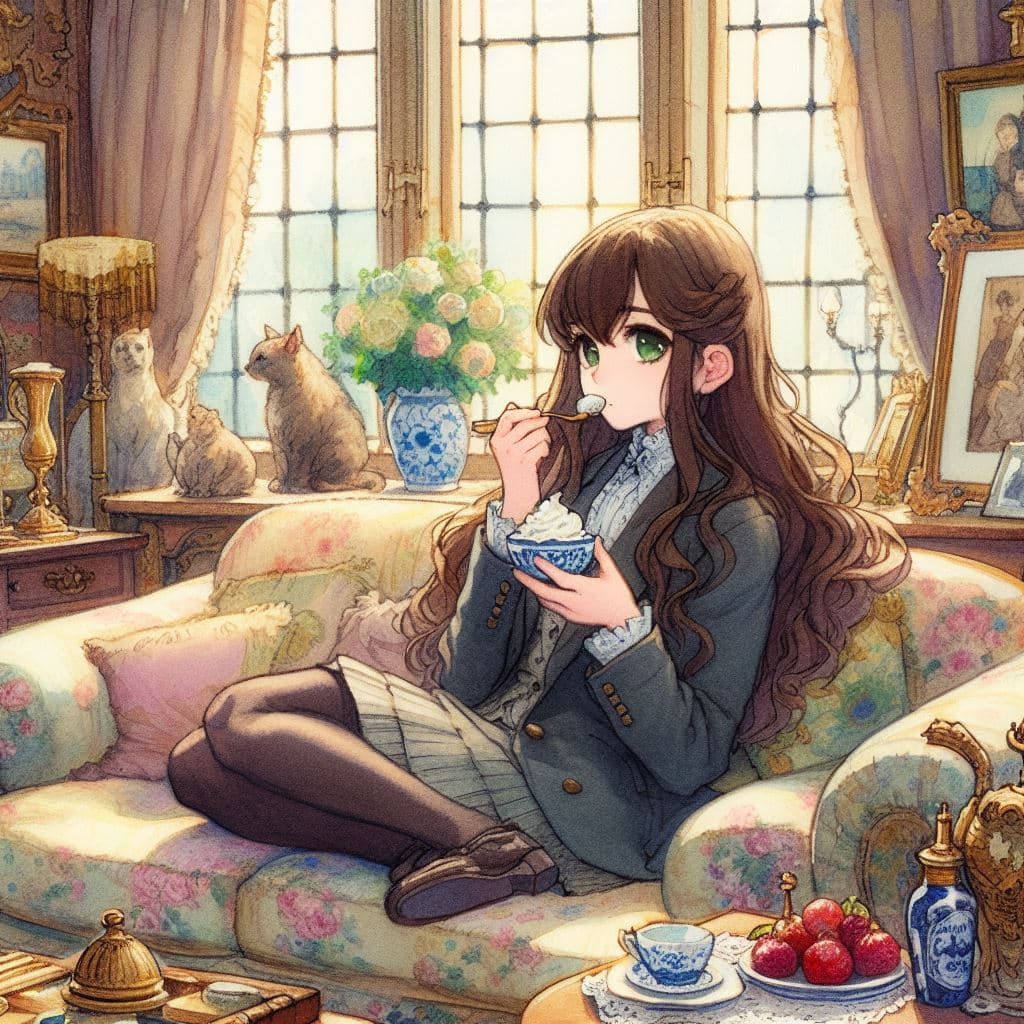 女の子、と先に入力する場合。 ヴィクトリア調の部屋、と先に入力する場合。フォーカスの向かう先が違う。これは面白い。