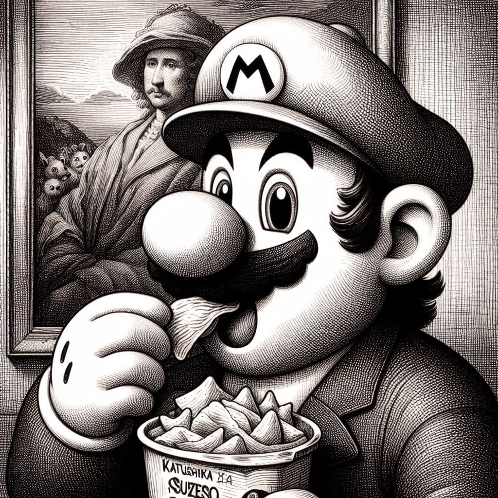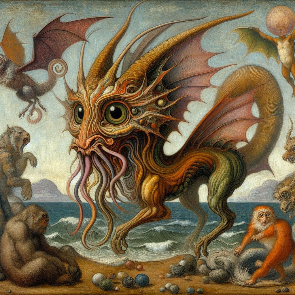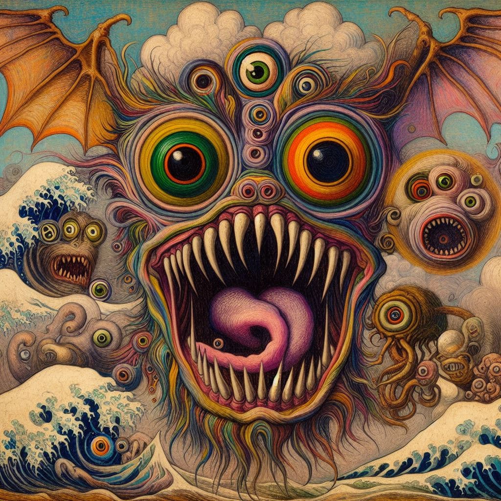 英国史についての漫画の1ページ、と指示したところbing君大混乱。ところどころイギリスと関係ないぞbing君。 信じがたく怖ろしい化け物、と指示。bing君はなんだか人間は牙さえあれば怖がると思ってそう。 こういう絵を出力させるのも面白い。 お前、マリオ3に出てきただろ。 もっと怖くできないのかな。 実際に居たらチビるけど、あんまり良い絵じゃない、ありきたり。怖いのって難しい。 なんだか心にグッと来る怖さじゃない…… これはちょっと不気味。この方向でもっと怖くできないかねbing君。 実際に居たら怖いよ、うん。でもなんかグッと来ないねbing君。 良くなってきた良くなってきた。 やっぱり虫だ。虫しか勝たん。 良い。 グロも駄目とは知らなかったぞbing君。どんな絵が出来てたんだい……見たいんだけど。 もうちょっとで約束の地に行けそうだ。がんばれbing君。 あああ〜、良いねぇ。すごく良いよ。bing君。 うーん、少しマイルド。もっとドカンと来てほしい。 水彩画だと全然怖くないなぁ。やっぱりオイルか。 なんか見慣れてきちゃった。