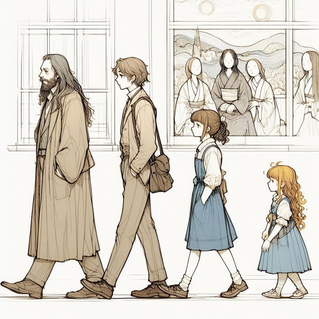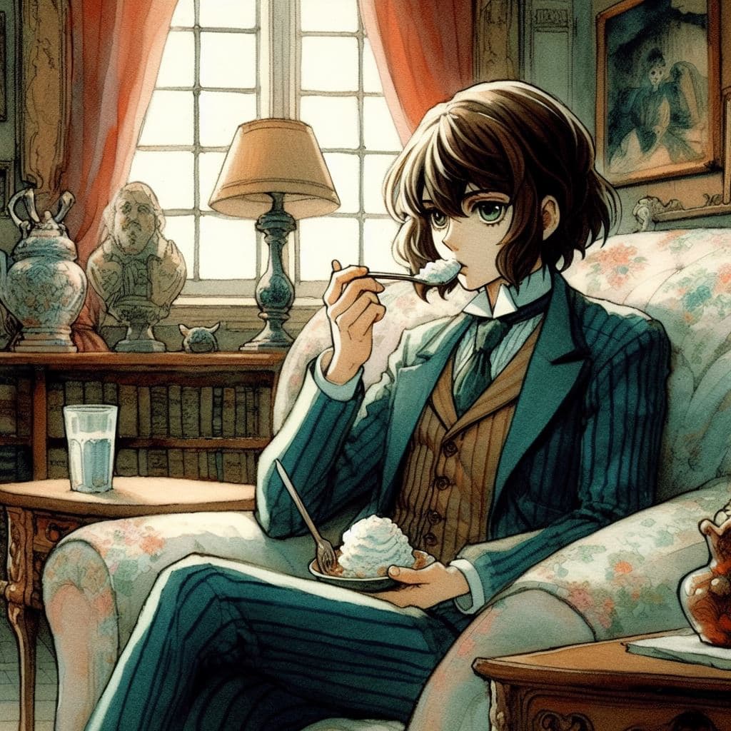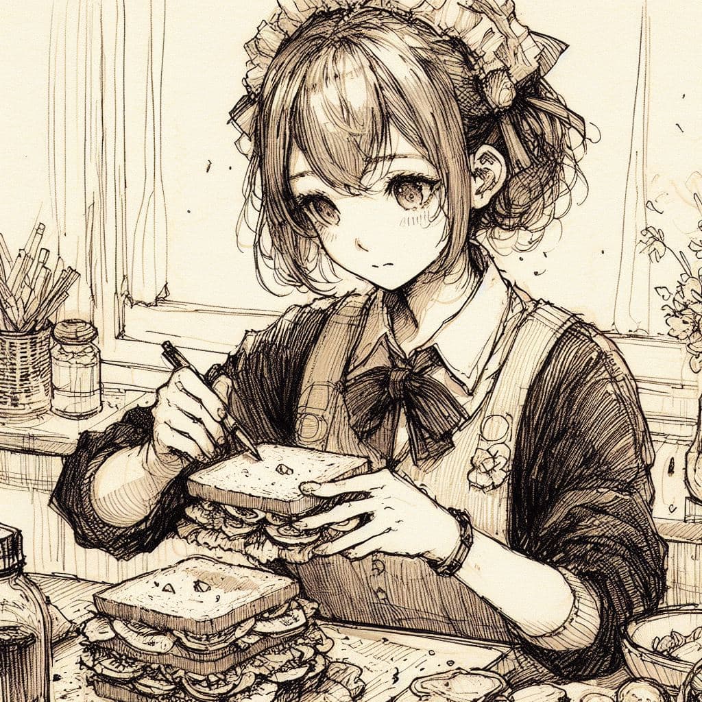 ……いや、カップケーキこんなに積んじゃダメだよbing君。自分が食べないからって…… これはチョコでラインを引いてるんだよね……?ウィスクじゃないよね。 気を抜くとすぐ背景を描き込んじゃうねbing君。もっと楽をしてくれ。 ズボラなライター。 背景にルネサンスの亡霊が見えるぞbing君。もっと、もっと力をぬいて。 bing君、その補助線の書き方はもしやポリゴンとして人を捉えてはいないか。 全力で描かせるとやっぱりAIだなあ。綺麗だけど。