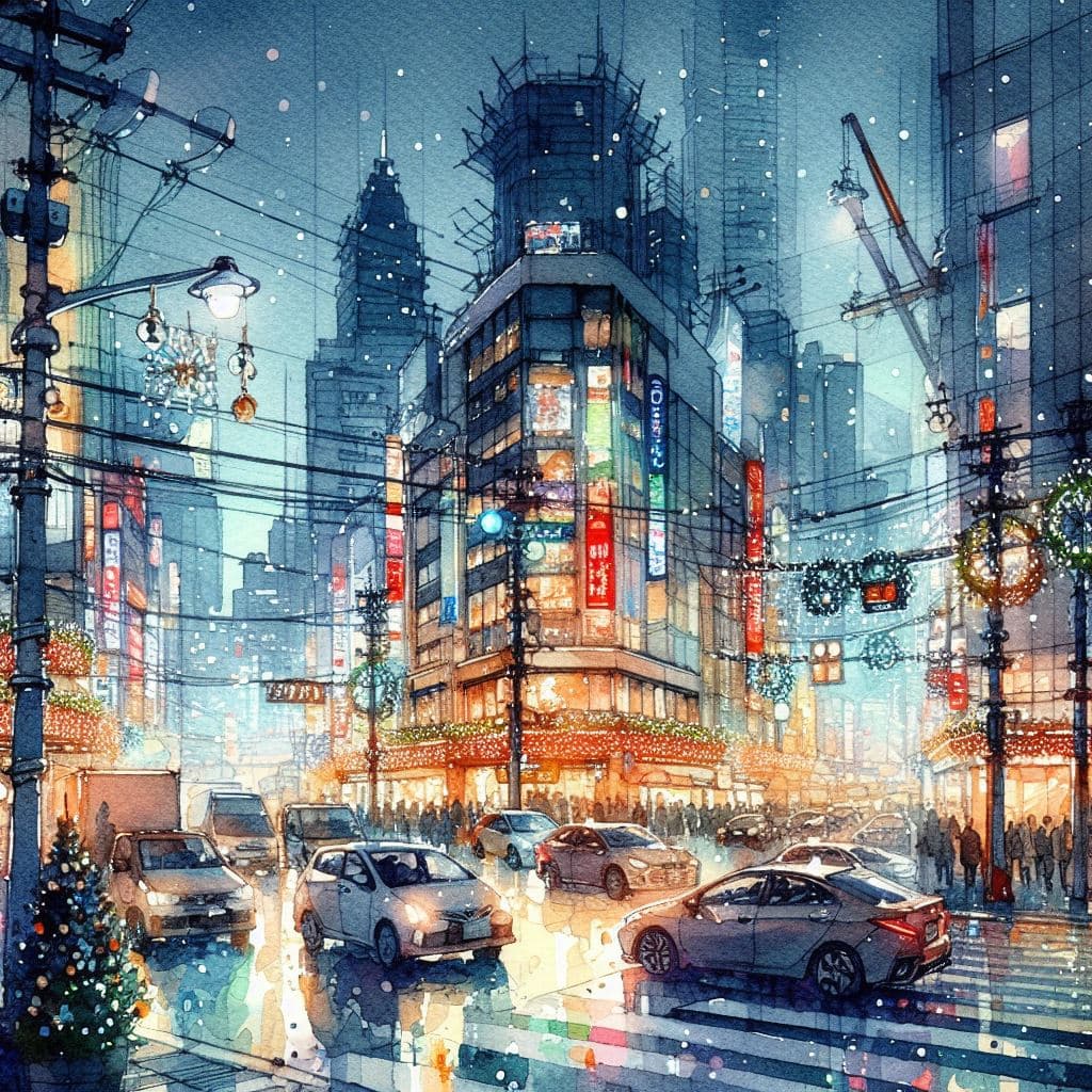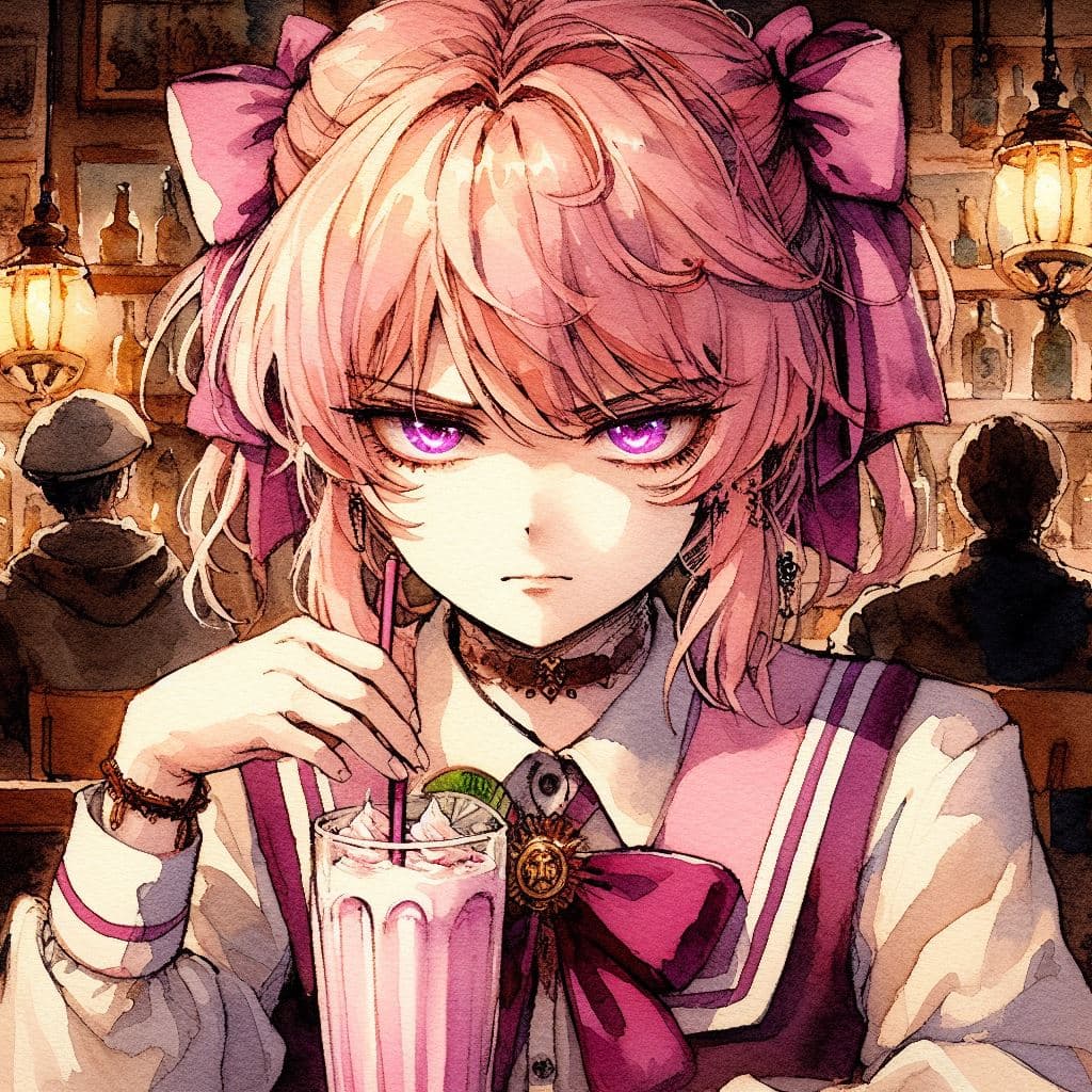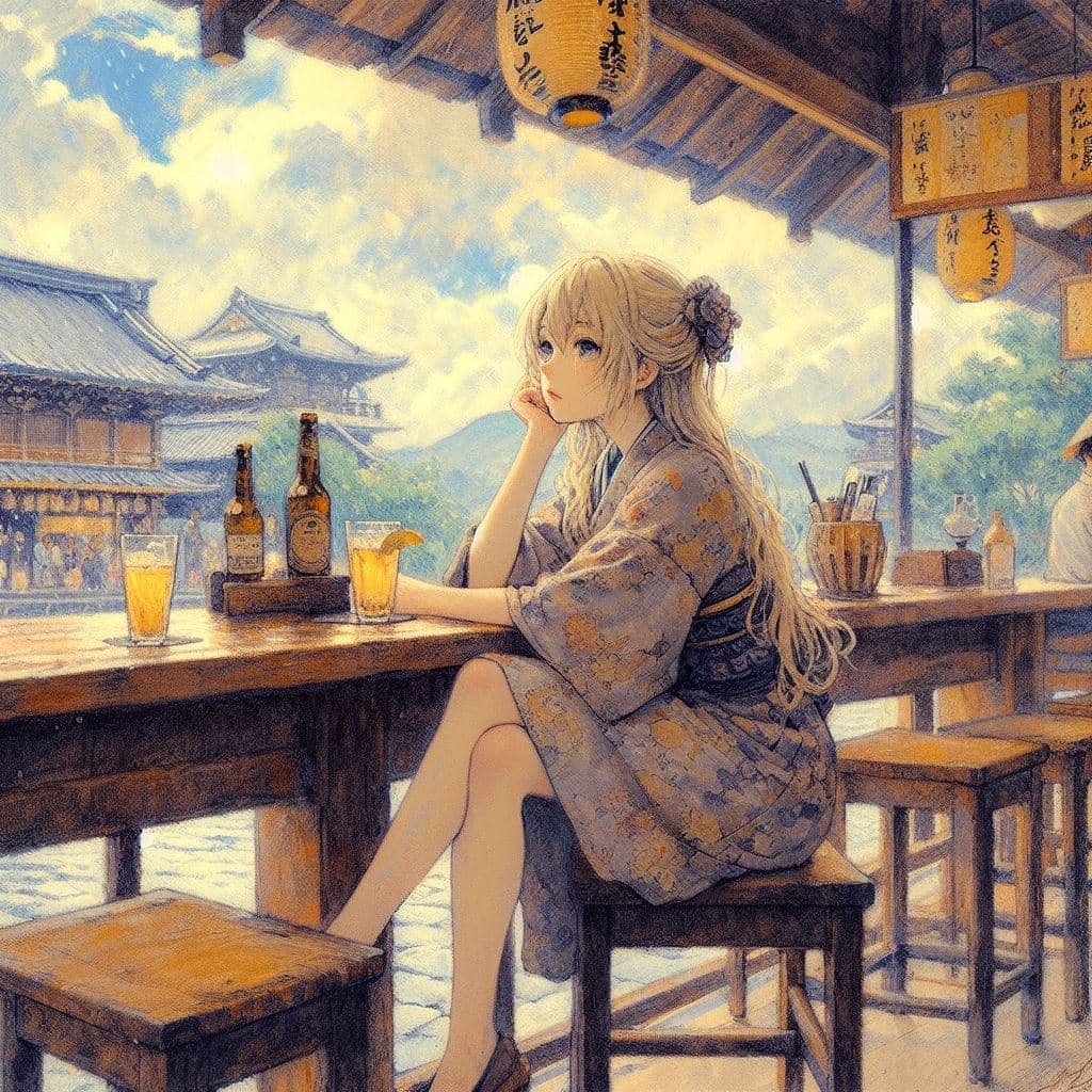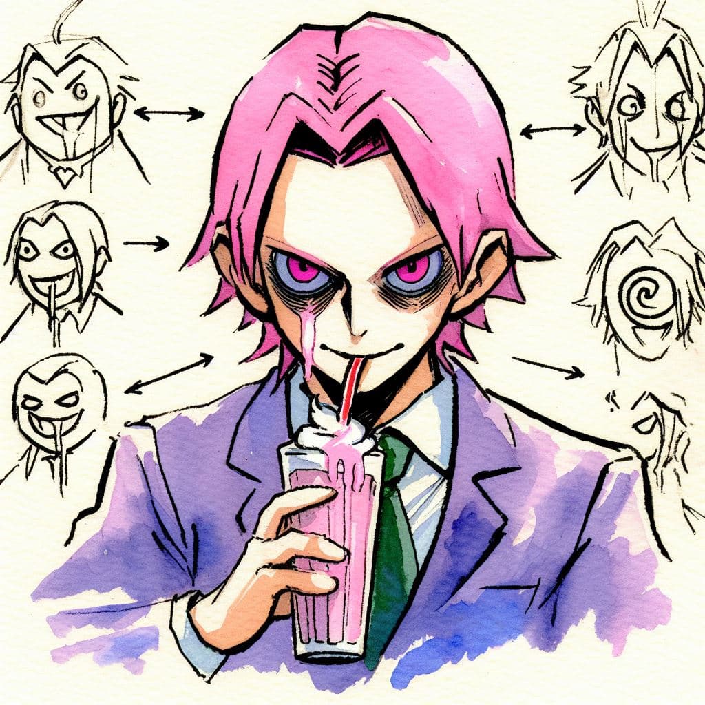 例えば、「アニメ風 スパイファミリー 水彩画 コンビニ前でコーヒーを飲んで空を見上げている少年の絵」