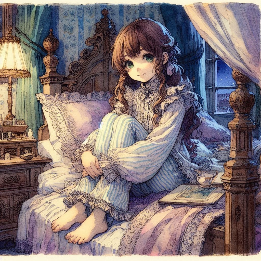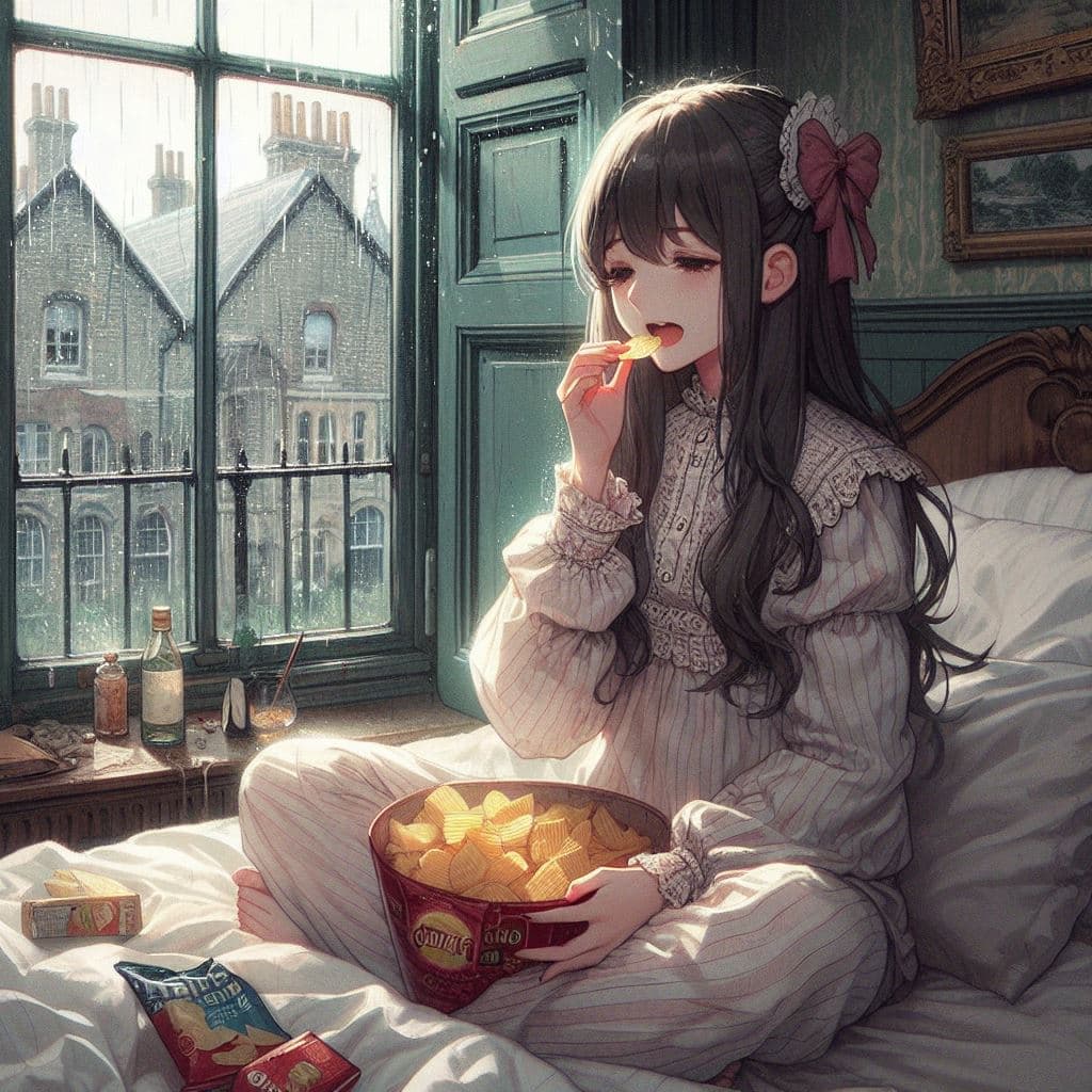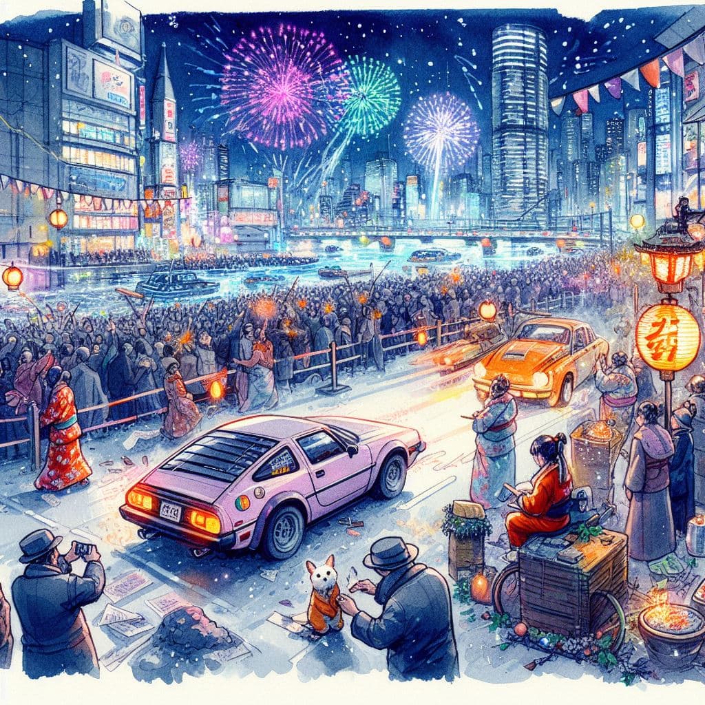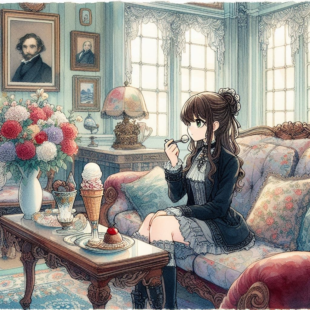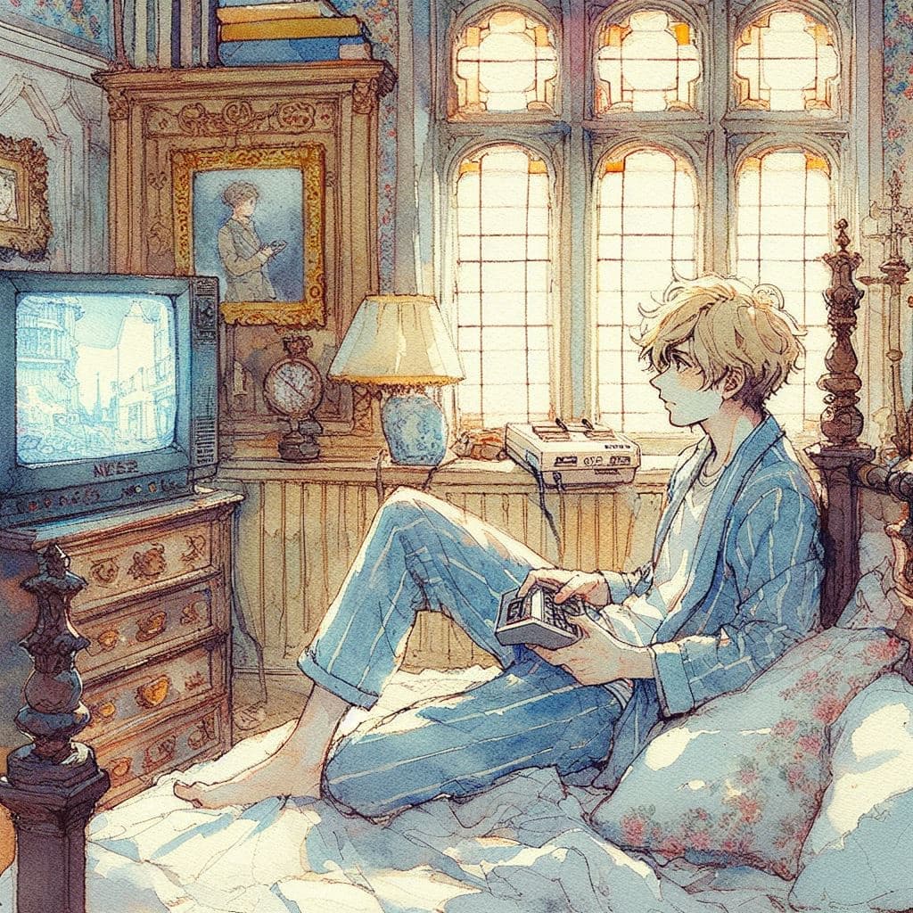 例えば、「アニメ風 スパイファミリー 水彩画 コンビニ前でコーヒーを飲んで空を見上げている少年の絵」