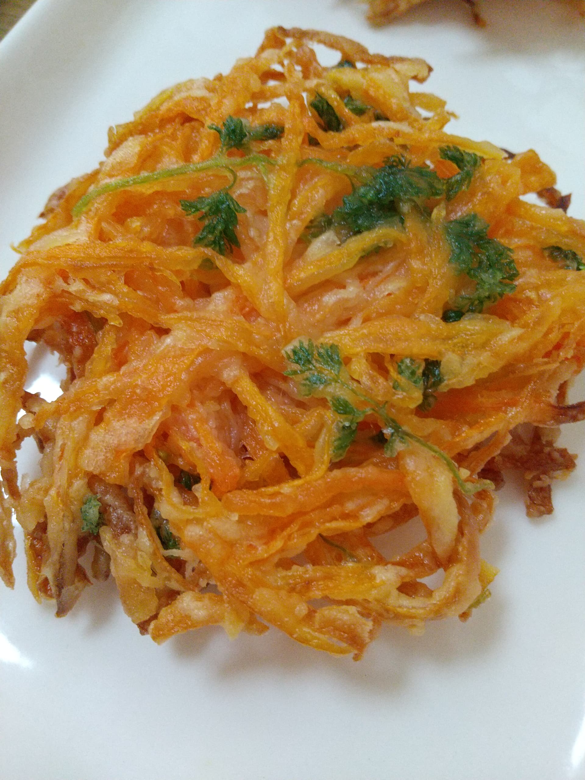 かき揚げ、にんじんの葉っぱまで入っているんですね。