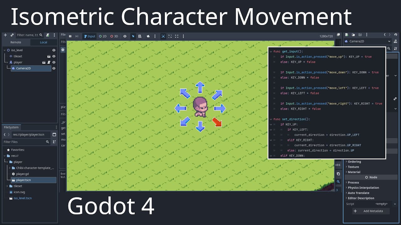 Node2DやCharacterBody2Dなどを使い、グリッド座標と画面座標を分けて管理- 移動処理は自分で制御し、通行可能かの判定を自作