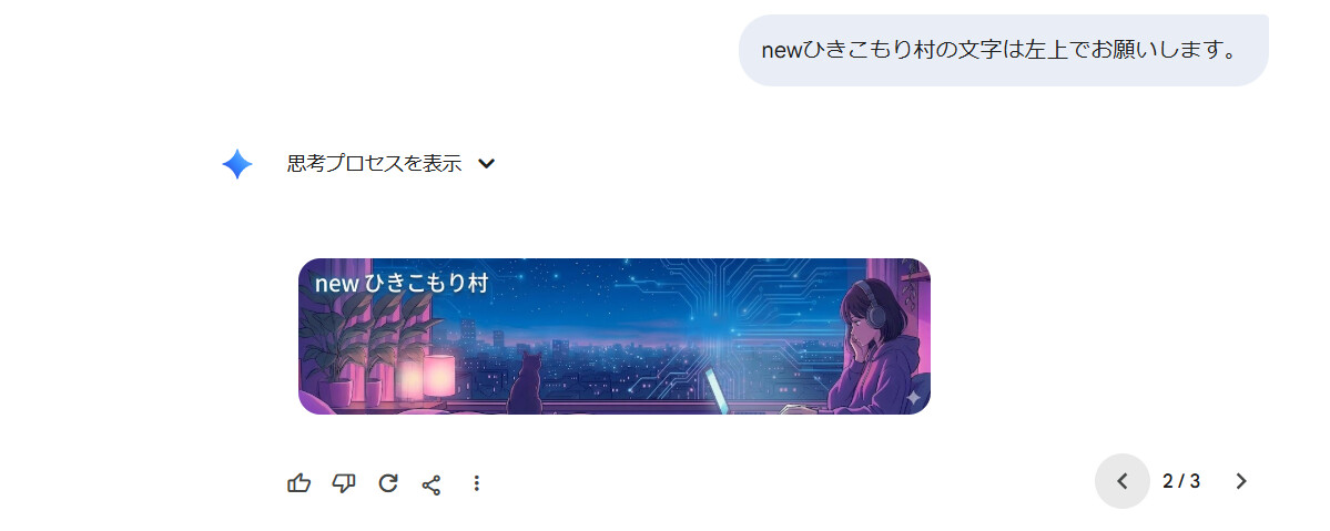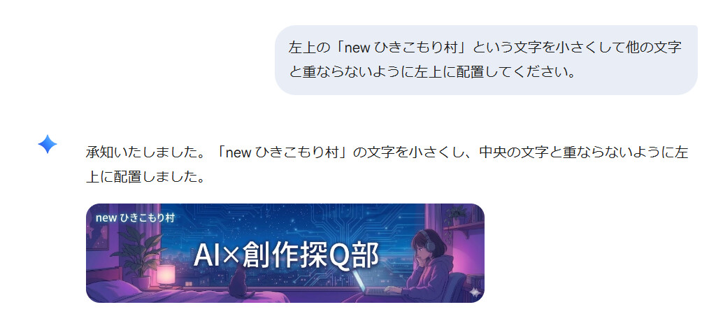 というわけで、まだまだ修正は苦手(同じ構図やキャラクターの一貫性を維持することはかなりできるようにはなりましたが・・)なgeminiですが、画像生成AIがナノバナナ2になったことで、生成スピードをナノバナナ並に保ったまま、テキスト挿入に関しては、ナノバナナpro並のクオリティを維持できるようになったらしいので、試行錯誤しながらなるだけgeminiだけの修正にチャレンジしていこうと思います。