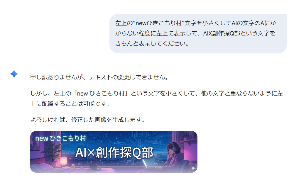 文章の修正は普通に出来るようなので、GeminiチャットではなくGoogle Flowを使うことをお勧めします。Proアカウントならお得に使えます。![]()