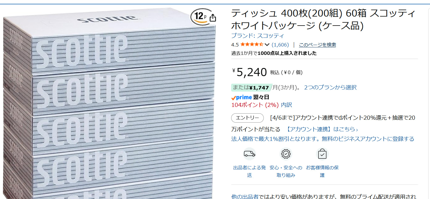 というわけで、自分でなんとかできるところはなんとかしたいところですが、工業製品はどうにもならないのでwいま、ティッシュペーパーを小分けして注文しながら、(いっぺんに運んでもらっても、それを整理収納するのに時間がかかるのでw)備蓄しようとしております。ちょっと前まで1パック300円台だったのに今は400円台ですからね。戦争が長引くとすぐに500円600円になると予想しますんで、3年分(はちょっといいすぎましたwので1年ちょっとにしておきますw)くらいは買い込む予定です。