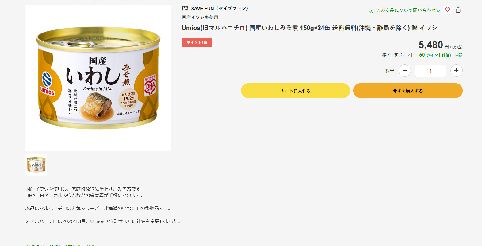 昨日、ドラッグストアのコスモスへ行って、野菜パックを買おうとしたところ、売り切れていて、まぁそれはよくあることなんですけど、それよりも、よく食べているいわしの缶詰の醤油味を試しにコスモスで買おうと思って、(いつも水煮ばかり食べていたのですが、このまえ味噌味にチャレンジしたらかなり美味しかったので、醤油味も試してみようと思いました。)棚をみたら北海道産いわしの缶詰がなくなっており、以下のようなリニューアルバージョンにすべて入れ替わっていました。社名がマルハニチロからウミオスに変わったらしく、パッケージのリニューアルをすすめているようですが、問題はお値段も1.3倍近くに値上がりして、ついに缶詰が200円ちかくになりつつあるようです。(この前までは156円だったのに今は198円くらいですね)