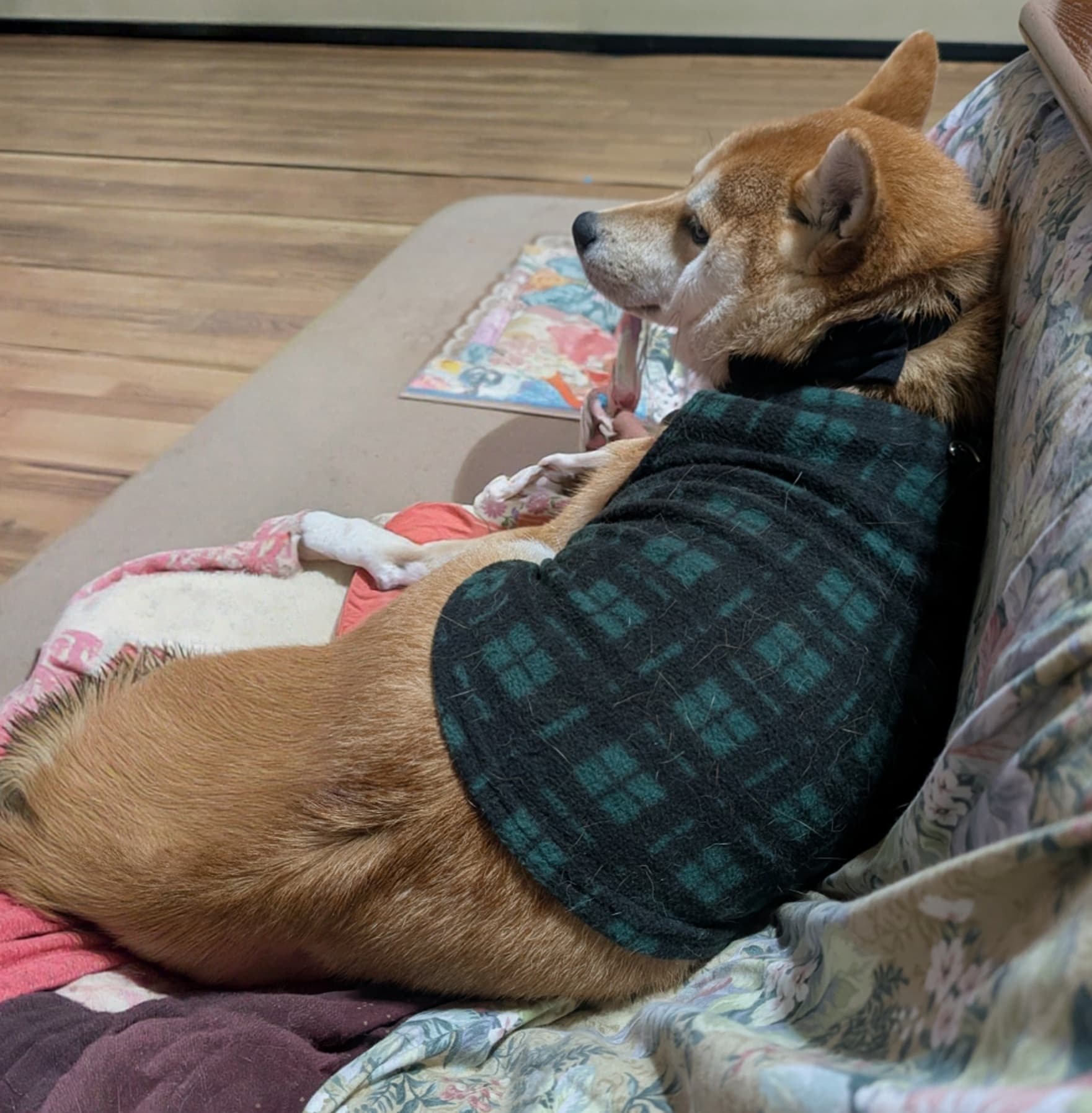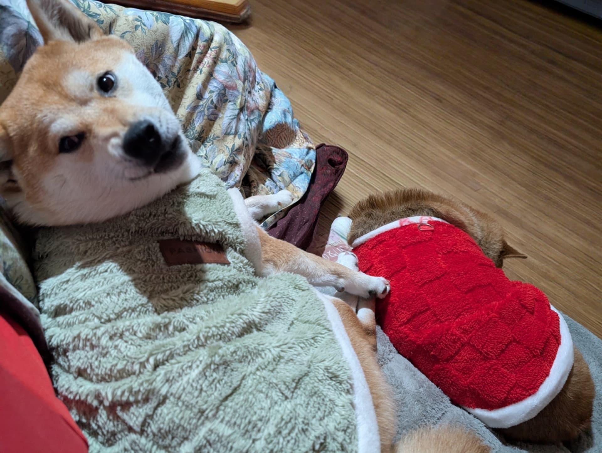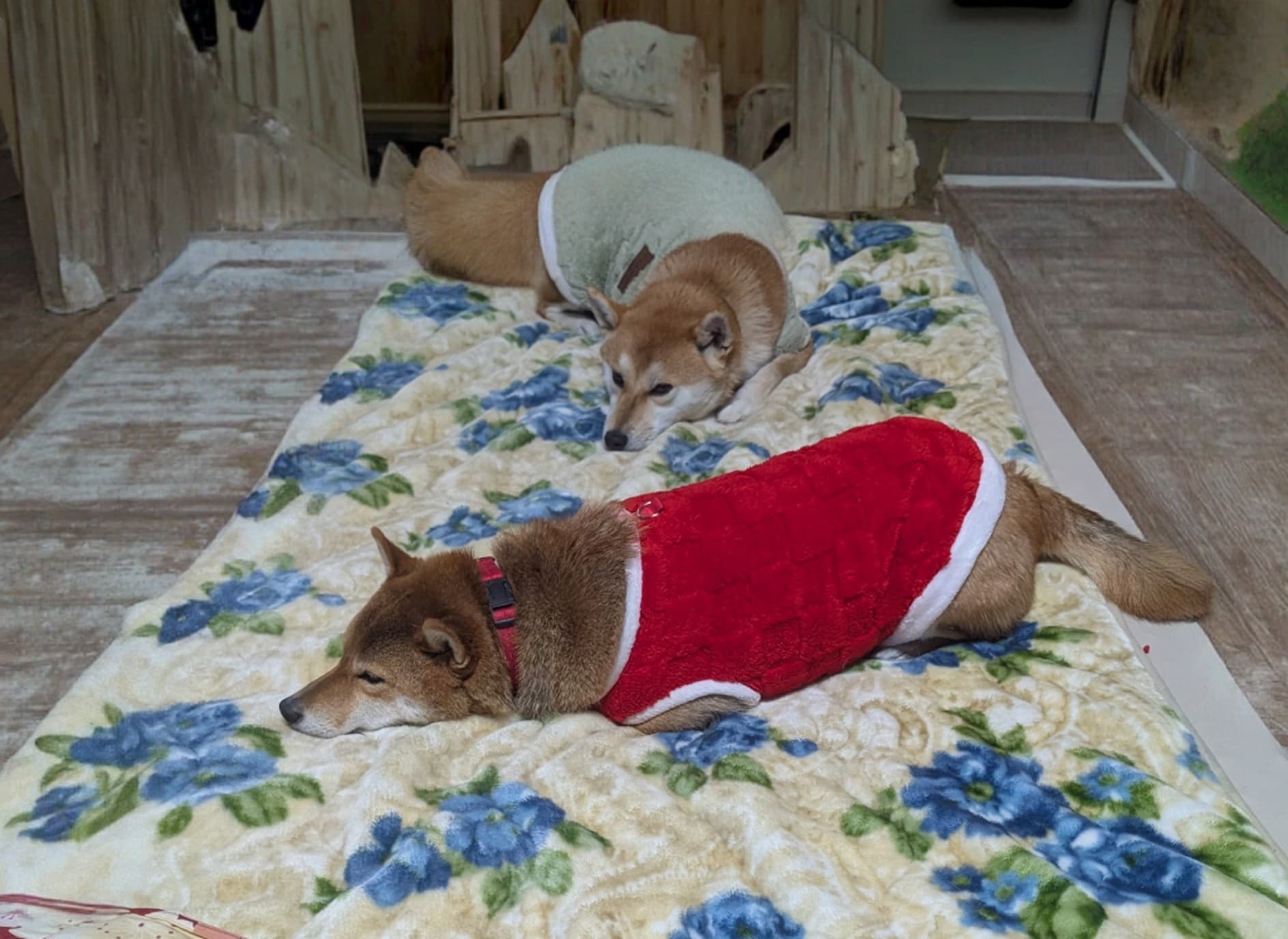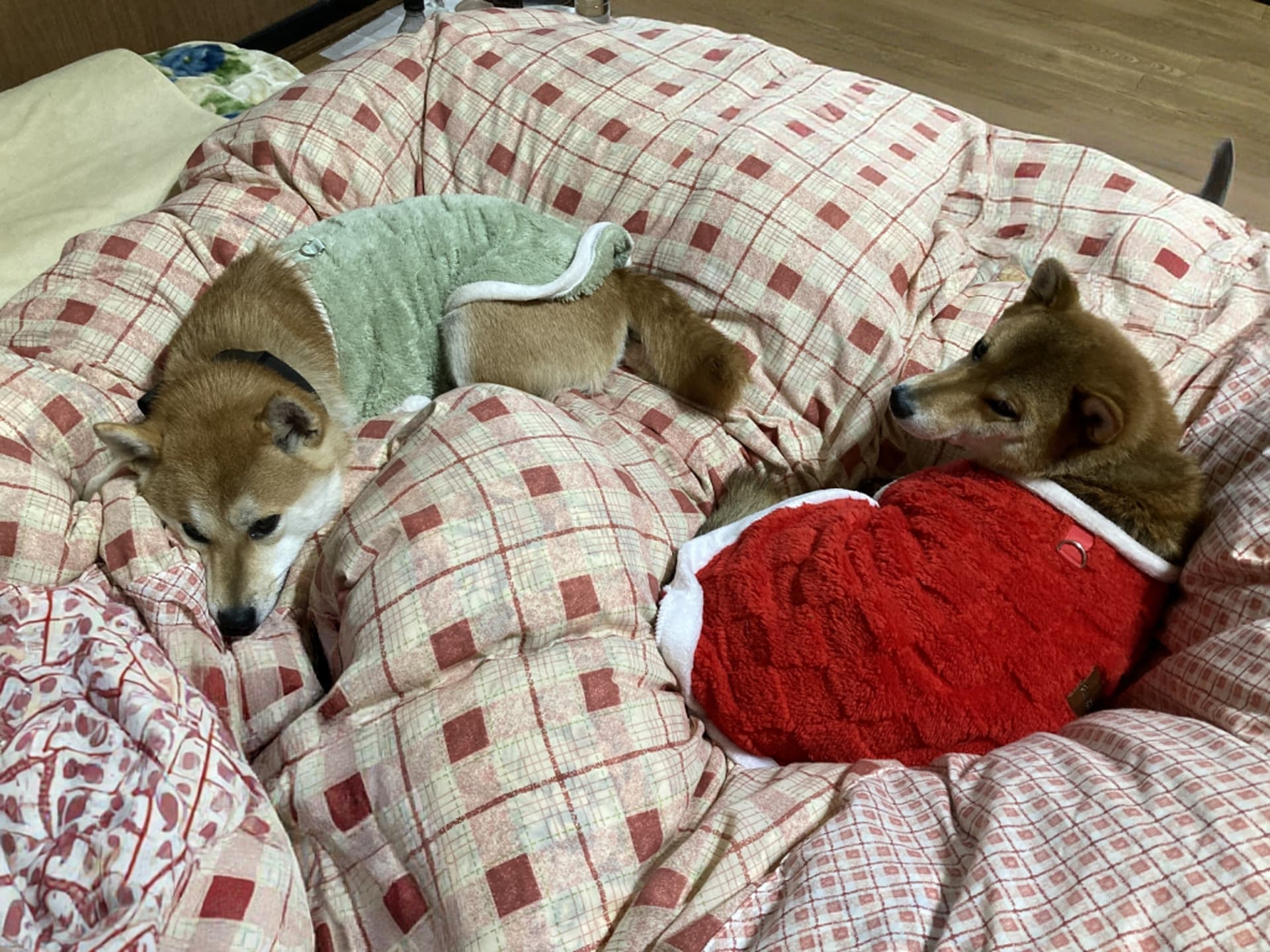 犬に服は要らないだろとずっと思って来ましたが、後輩柴は冬毛が薄いと言うか夏毛のママ換毛してないような…