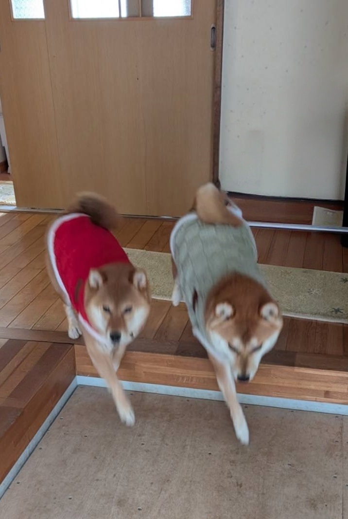 散歩行くよ!と呼ぶとダッシュして来る2匹